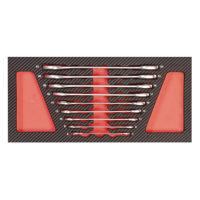 Klucze dwustronne: 6 x 7 - 8 x 9 - 10 x 11 - 12 x 13 - 14 x 15 - 16 x 17 - 18 x 19 - 20 x 22 - 21 x 23 mm