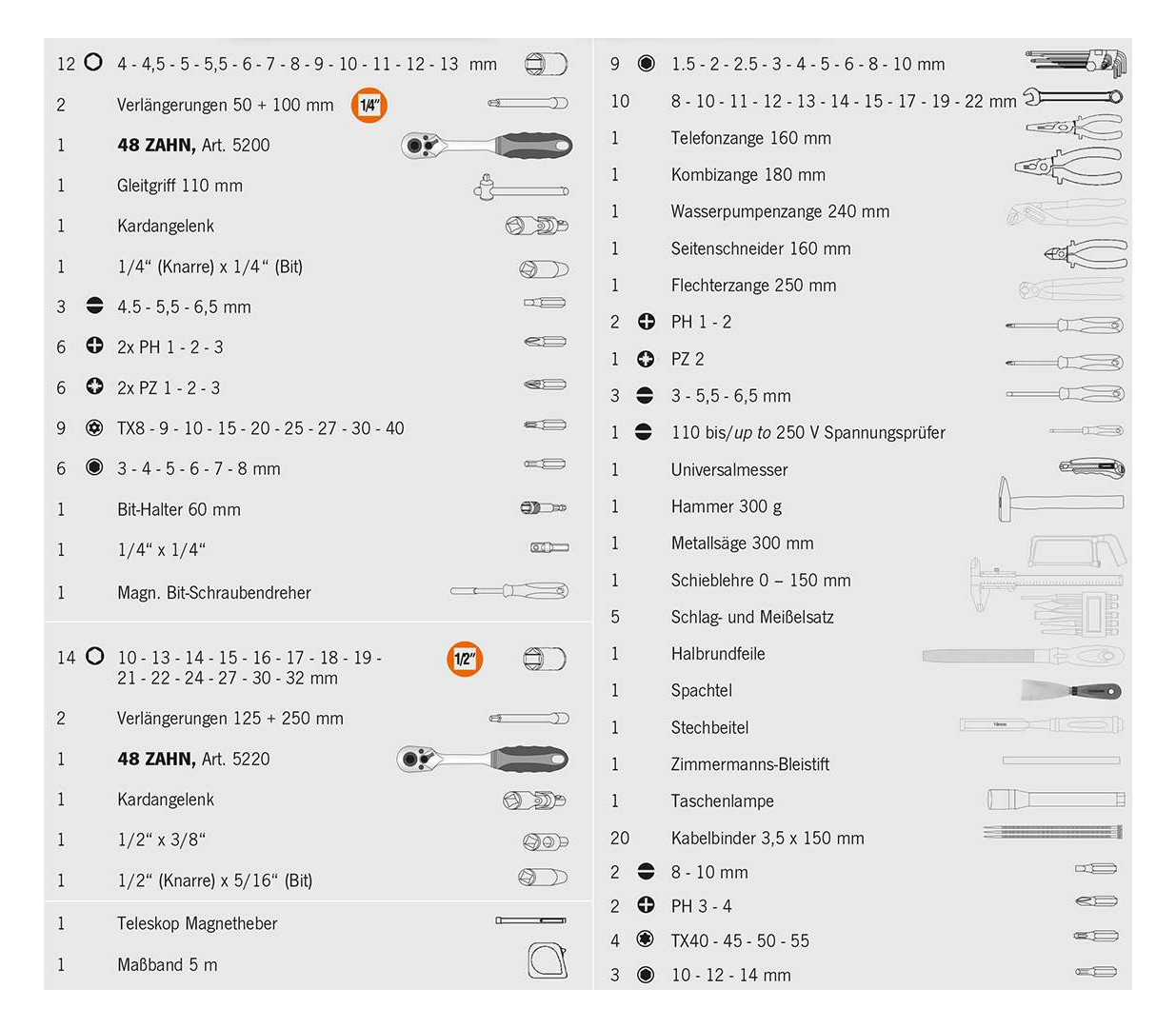Wysokiej jakości, uniwersalny zestaw narzędzi 6,3 [1/4"] + 12,5 [1/2"]