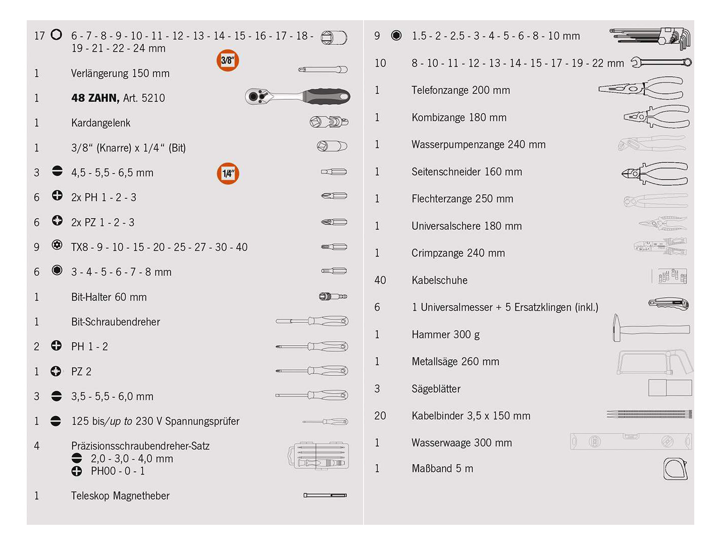 Wysokiej jakości, uniwersalny zestaw narzędzi [3/8"]