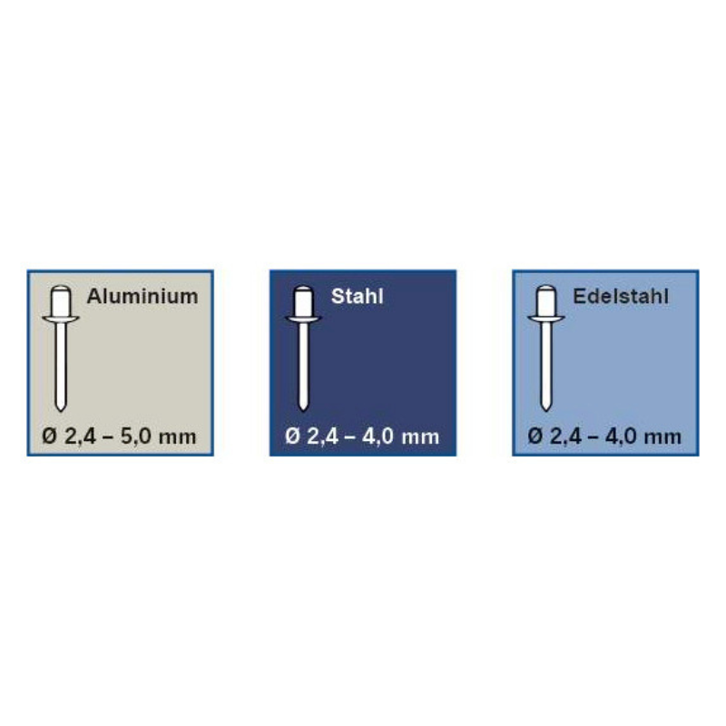 Zakres dla nitów stalowych: 2,4 – 5,0 mm