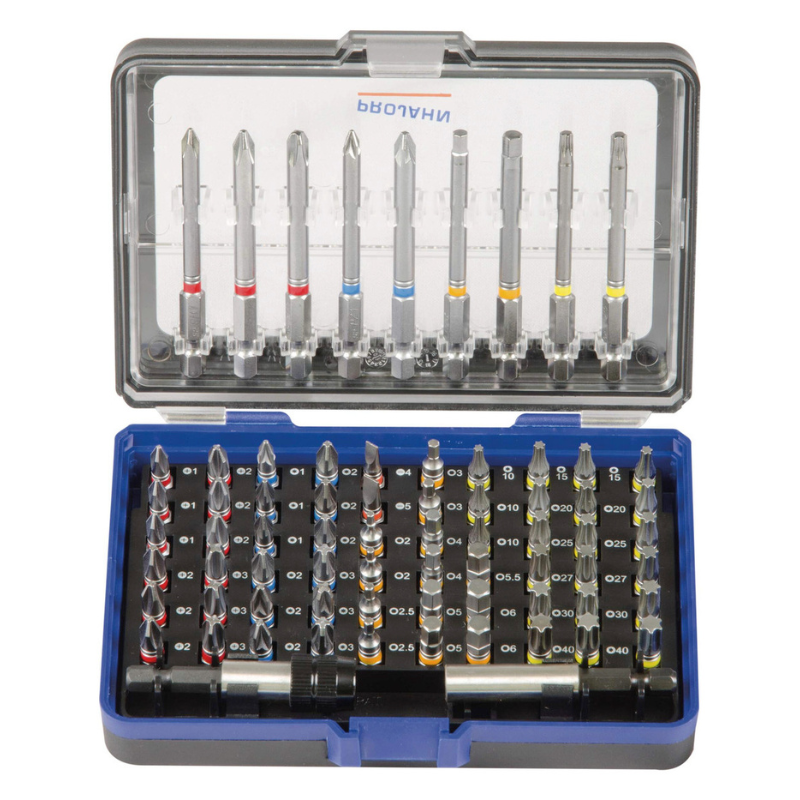 Zestaw ekspozycyjny zawierający 6 kompletów profesjonalnych bitów w trwałych, przezroczystych pudełkach z tworzywa sztucznego. Każdy zestaw zawiera bity o długościach 25 mm i 75 mm, starannie dobrane pod kątem potrzeb użytkowników profesjonalnych. Bity wykonane są z wysokiej jakości stali specjalnej S2, z precyzyjnym dopasowaniem i specjalnym hartowaniem, co zapewnia długą żywotność oraz niezawodne połączenia. Kolorowe oznaczenia umożliwiają szybką identyfikację odpowiedniego bitu.