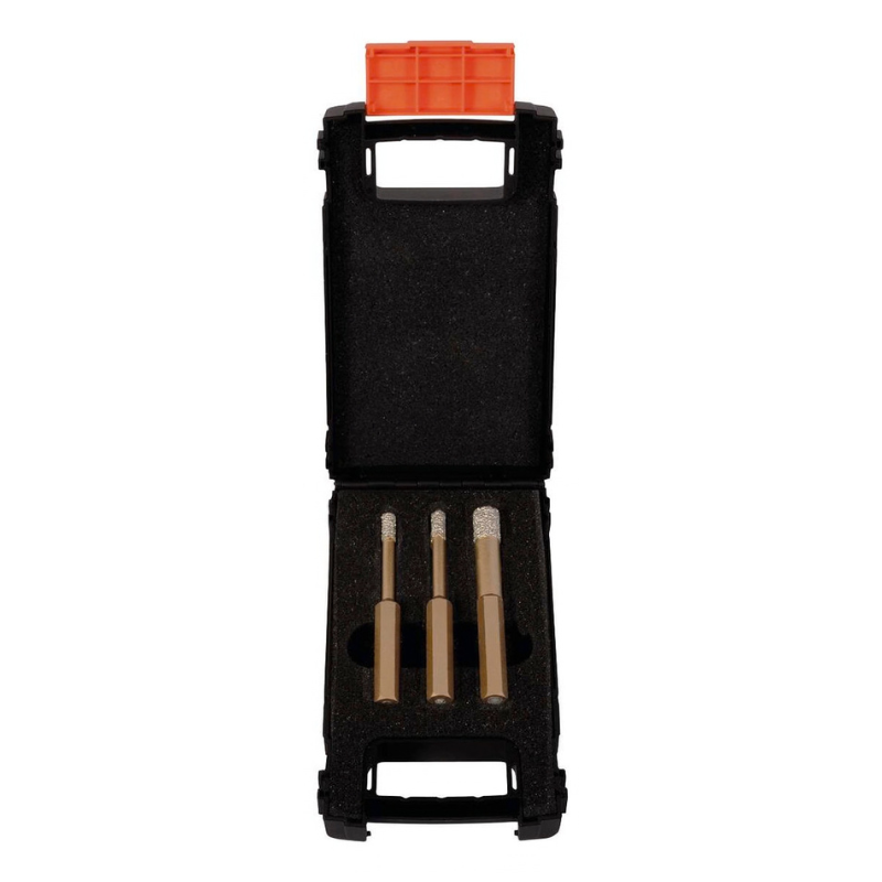 Zestaw diamentowych wierteł z woskiem, chwyt 6-kątny - 3 sztuki.