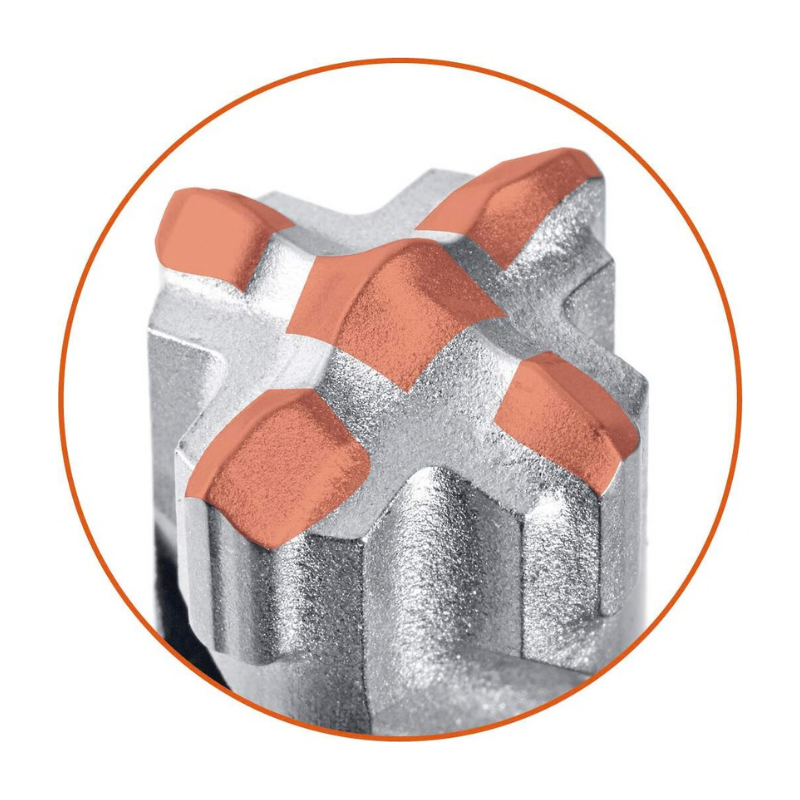 5 elementów tnących efektywnie łączy udar i skręcanie, umożliwiając dokładne wiercenie w betonie i zbrojeniu.