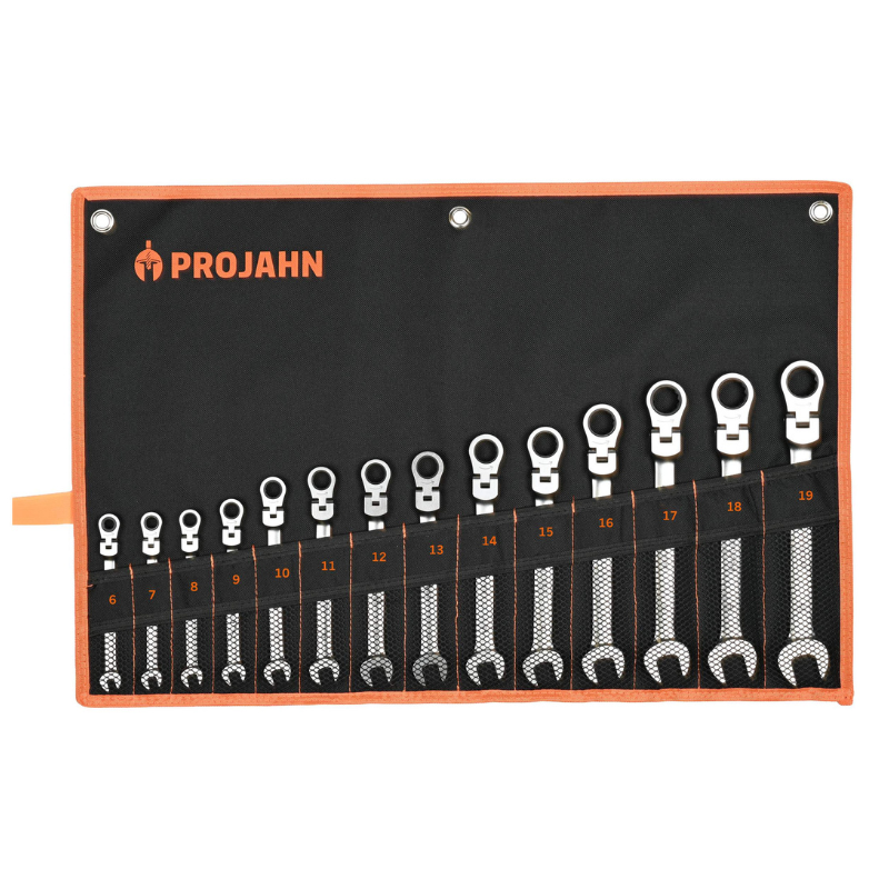 Klucz został wyposażony w precyzyjny mechanizm grzechotkowy 72T z minimalnym kątem pracy 5°, dzięki czemu doskonale sprawdza się w ciasnych i trudno dostępnych miejscach. Przełącznik kierunku pracy umieszczony przy oczku pozwala szybko zmienić kierunek dokręcania lub odkręcania – bez konieczności zdejmowania klucza ze śruby.