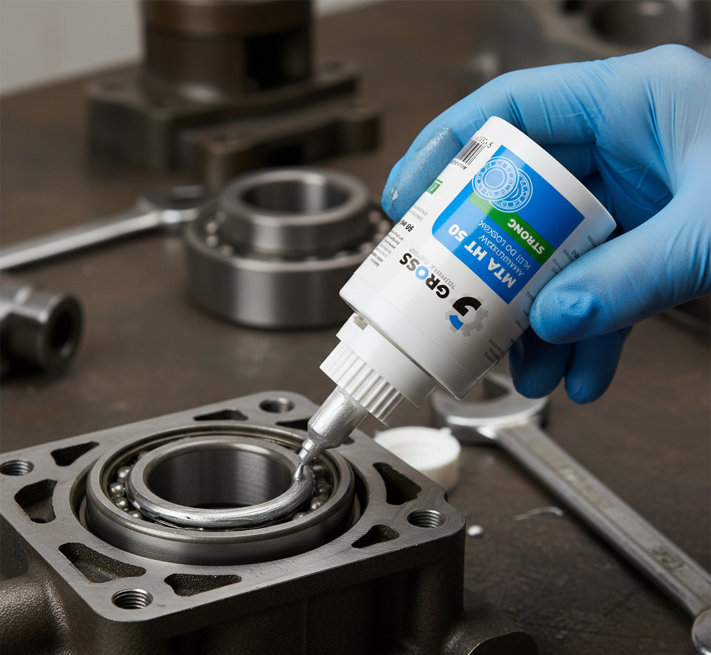 Na odtłuszczoną powierzchnię nanieść zygzakiem klej anaerobowy (większe powierzchnie) lub liniowo (mniejsze powierzchnie) po czym osadzić łożysko. Do odtłuszczania powierzchni przed klejeniem można stosować zmywacz uniwersalny marki GROSS: RAPID QRL-S1 art. nr: G0400 1 500