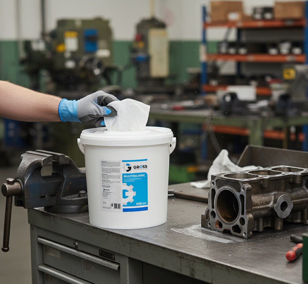 Zdjęcie poglądoweMULTITECHNIC to chusteczki przeznaczone do czyszczenia i przemywania powierzchni w celu usunięcia kurzu, pyłu oraz nieczystości. Produkt nadaje się do użytku w zakładzie produkcyjnym, warsztacie, lakierni, fabryce czy przetwórni.