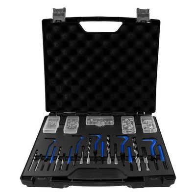 Zdjęcie poglądoweProfesjonalny zestaw do regeneracji i wzmacniania uszkodzonych gwintów wewnętrznych w materiałach o niskiej wytrzymałości, takich jak aluminium. Zestaw zawiera narzędzia umożliwiające precyzyjne rozwiercenie uszkodzonego gwintu, nacięcie nowego gwintu pod wkładkę, montaż wkładki gwintowej oraz usunięcie końcówki montażowej.