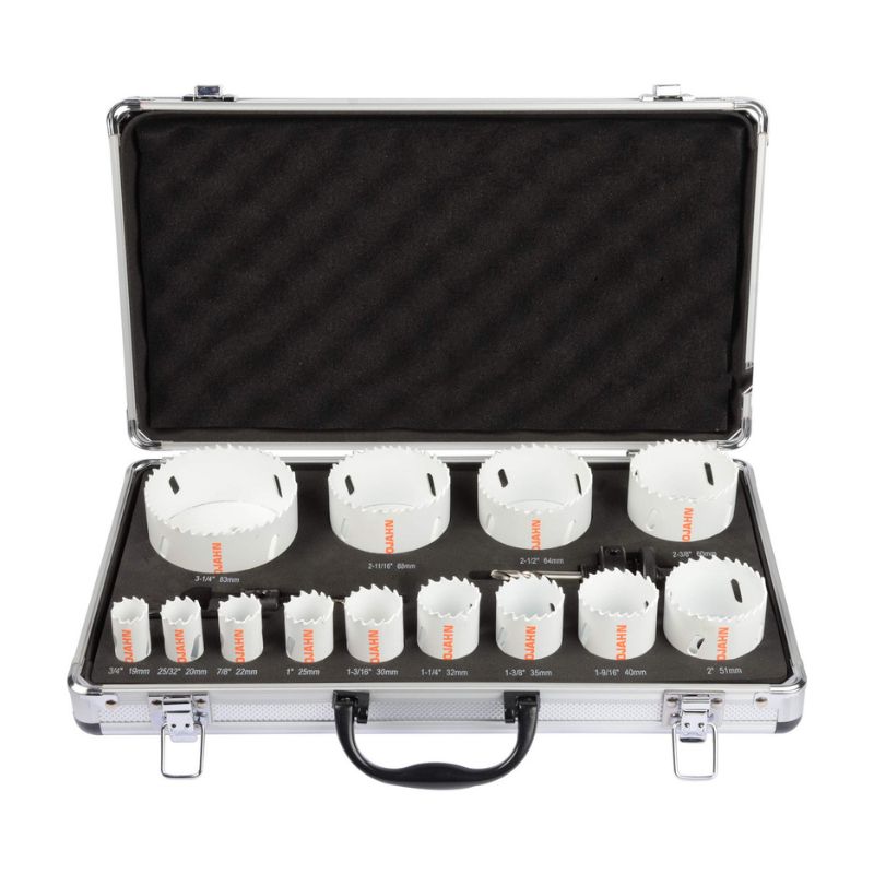 Zestaw otwornic bimetalowych z uzębieniem Vario (4-6 zębów na cal) zapewniający szybki postęp cięcia. Przeznaczony do czystego i precyzyjnego wiercenia otworów w stali, metalach nieżelaznych, blachach i aluminium.