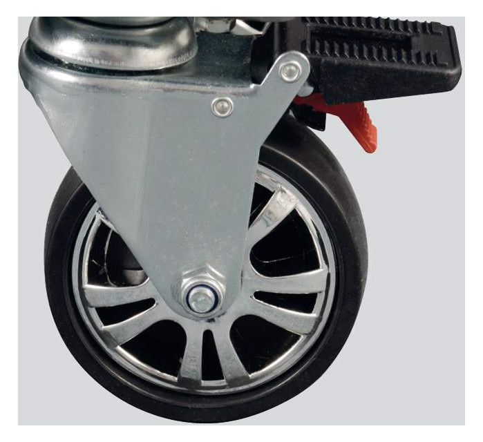 Maksymalna stabilność dzięki 2 kołom z hamulcem postojowym i obrotowym