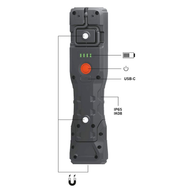 Wytrzymała i wszechstronna lampa robocza przeznaczona dla specjalistów z branż: elektroinstalacyjnej, sanitarnej, motoryzacyjnej, inżynierii mechanicznej, serwisowej oraz technicznej obsługi budynków.