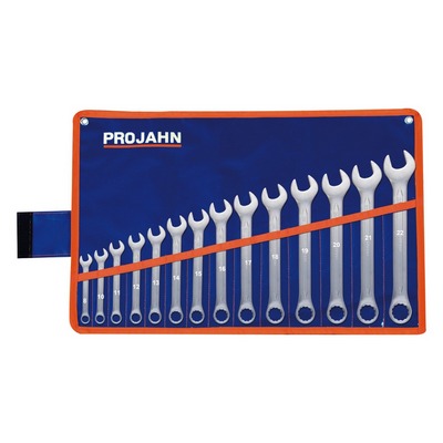 Zdjęcie poglądoweProfesjonalny, 14-częściowy zestaw kluczy oczkowo-płaskich z grzechotką i przegubem 180° dla maksymalnej elastyczności i ergonomii pracy w trudno dostępnych miejscach.