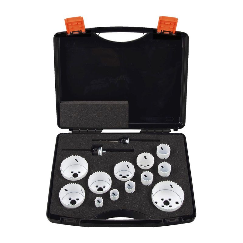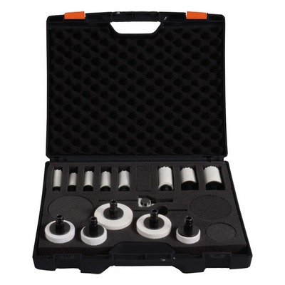 Zdjęcie poglądoweZestaw otwornic Bi-Metall z uzębieniem Vario wykonanym ze stali szybkotnącej z dodatkiem 8% kobaltu, przeznaczony do precyzyjnego wiercenia otworów w różnych materiałach.