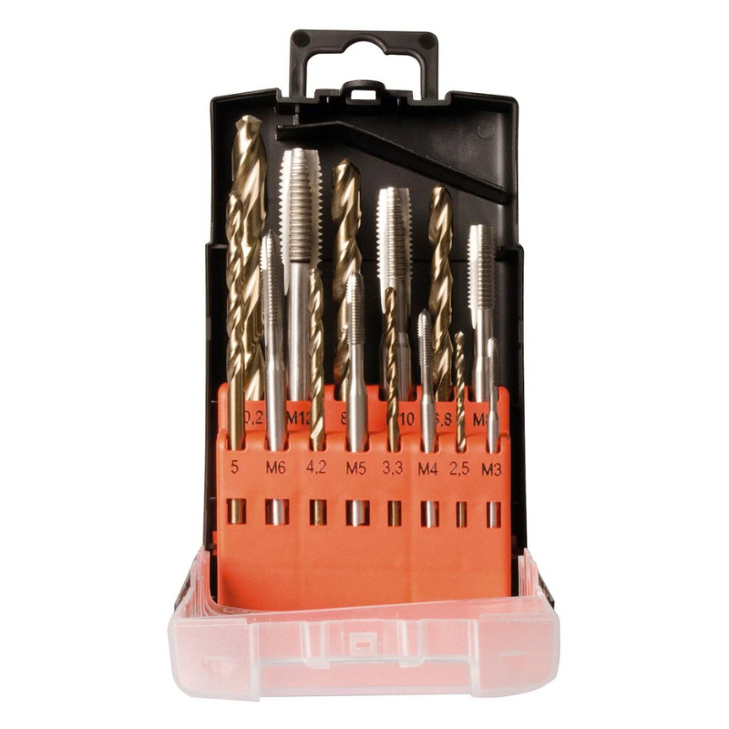 Zestaw wierteł i gwintowników maszynowych HSS-Co 5% 14-szt.