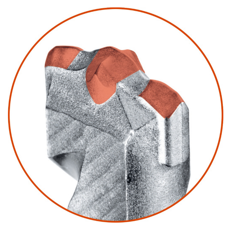 Trzy elementy tnące (Crusher) gwarantują najwyższą prędkość wiercenia i skuteczne rozdrabnianie materiału przy zastosowaniu udaru i momentu obrotowego.