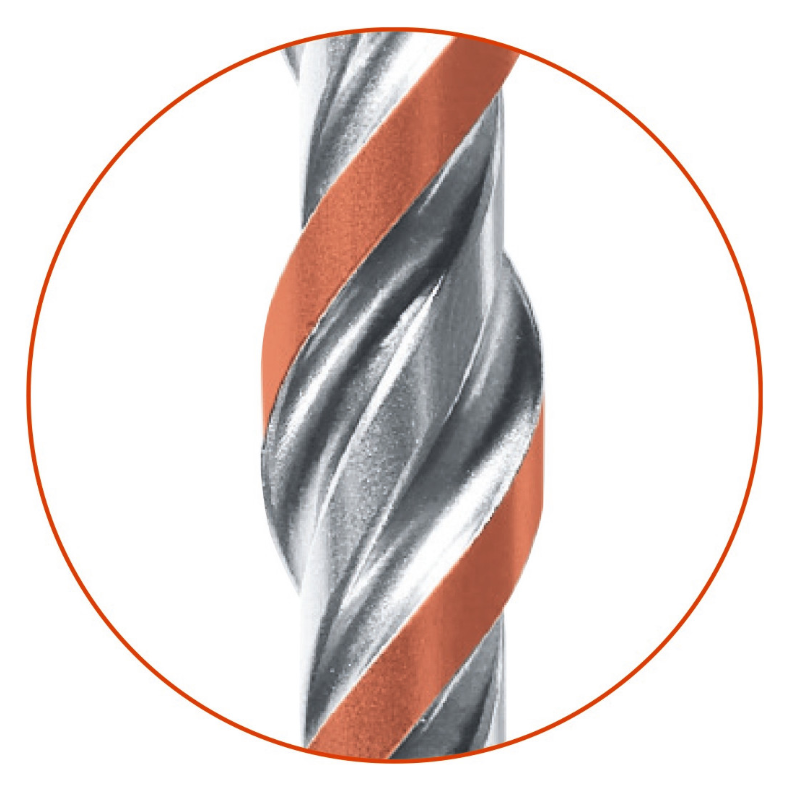 2-spiralna geometria z dużymi rowkami zapewnia szybki transport urobku i zmniejsza tarcie.