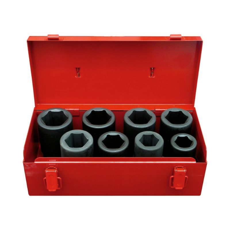 8-częściowy zestaw nasadek udarowych 25 [1"] w wytrzymałej metalowej walizce. Nasadka bardzo głęboka – idealna do ciasnych miejsc pracy lub trudno dostępnych śrub i nakrętek. Z kołkiem ustalającym i pierścieniem ustalającym do zamocowania na kluczu udarowym. Zoptymalizowany pod kątem trwałości i najwyższych wymagań, nawet podczas ciągłego użytkowania z kluczem udarowym.