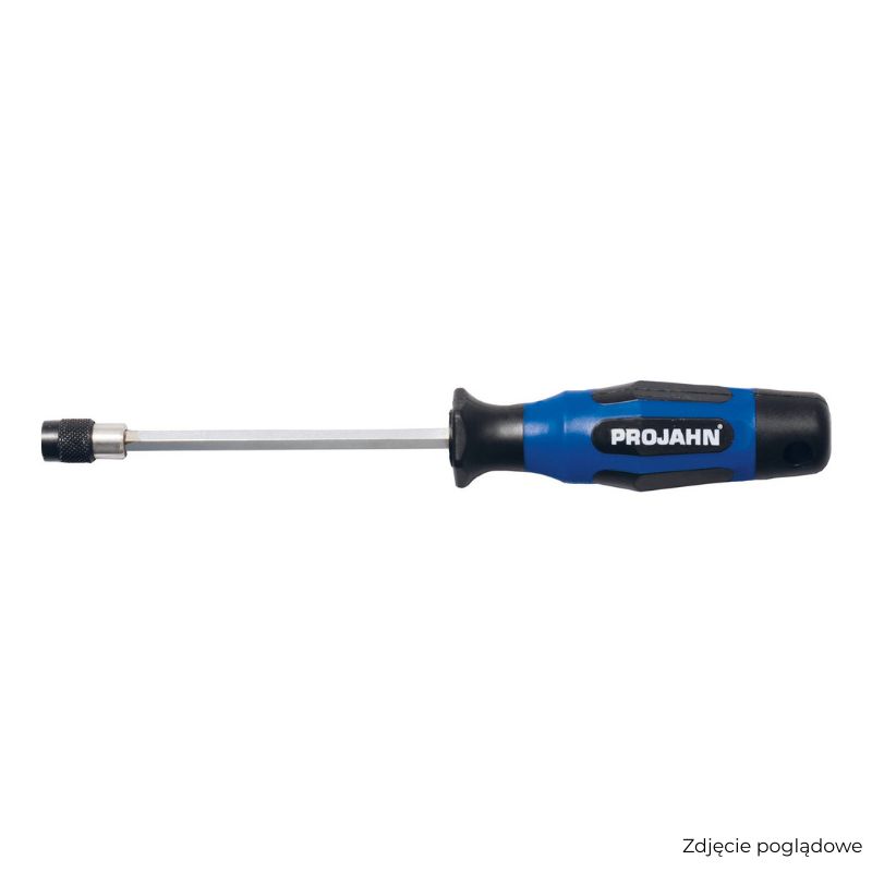 Zdjęcie poglądoweProfesjonalny wkrętak ręczny z magnetycznym końcem i uchwytem szybkomocującym, zgodny z normami DIN 3126 / ISO 1173, przeznaczony do końcówek zewnętrznych sześciokątnych 1/4". Idealny do precyzyjnych prac warsztatowych, montażowych i serwisowych.