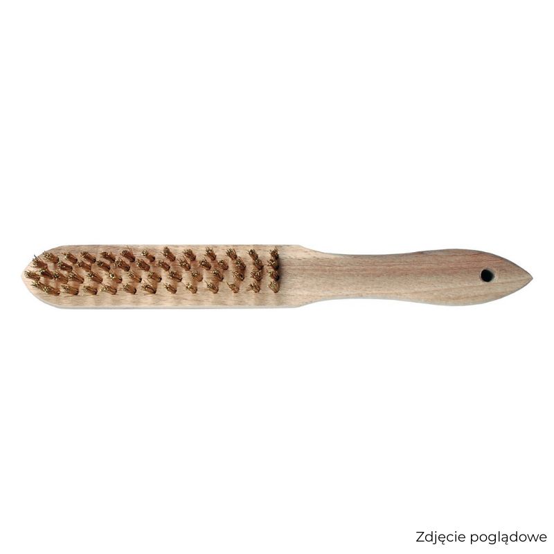 Zdjęcie poglądoweSzczotka szczególnie nadaje się do zmatowienia, usuwania kamienia, polerowania i czyszczenia powierzchni. Nie uszkadza powierzchni chromowanych. Wykonana z wytrzymałego korpusu z drewna bukowego z precyzyjnie zaokrąglonymi krawędziami rękojeści. Zakrzywione włosie z drutu mosiężnego dla delikatniejszej obróbki powierzchni. Zakrzywiony drut mosiężny, średnica 0,25–0,30 mm.