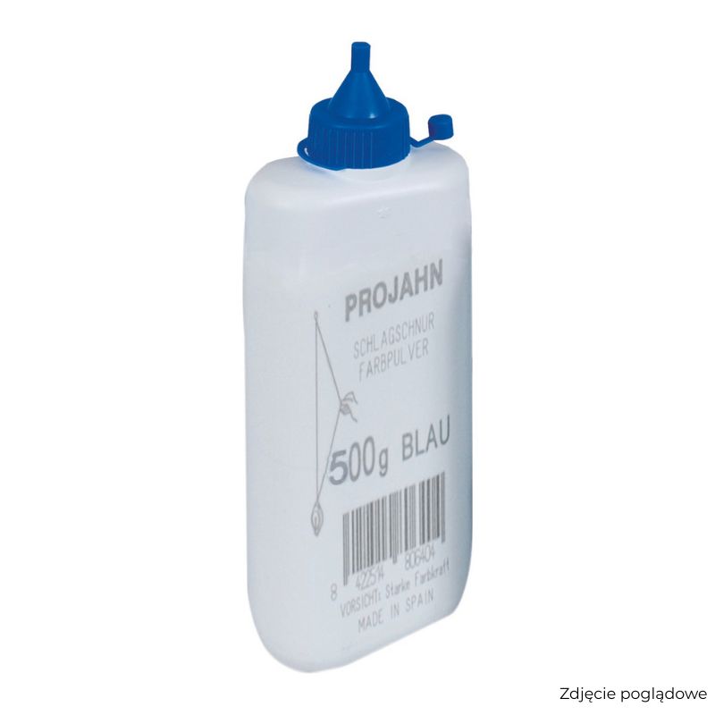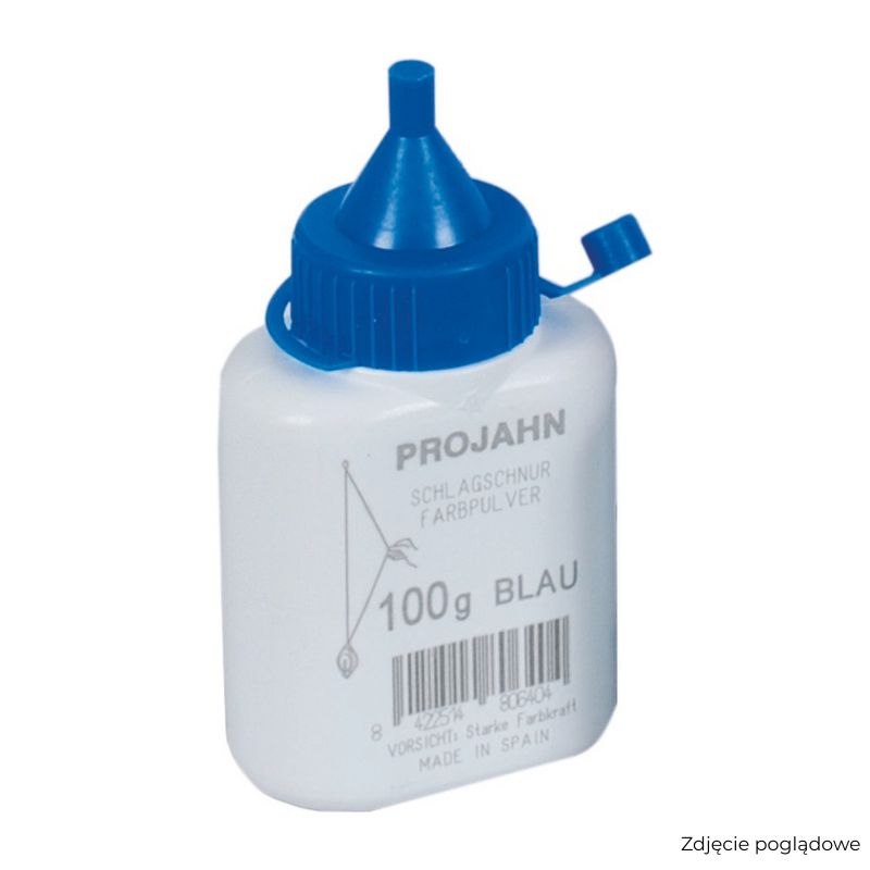 Zdjęcie poglądoweButelka z niebieskim proszkiem do sznurka traserskiego.