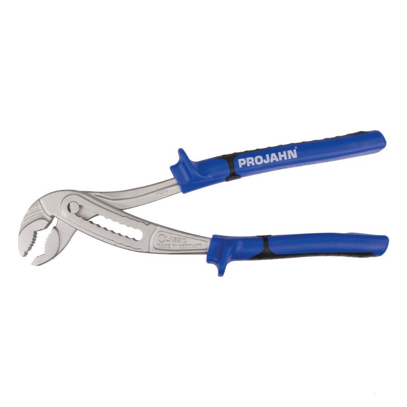 Wytrzymałe szczypce nastawne do rur wodnych z przegubem wsuwkowym zapewniającym maksymalną wydajność. Przegub wsuwkowy z szerokimi powierzchniami prowadzącymi. Ergonomiczne położenie i kształt rękojeści dla optymalnego przenoszenia mocy. Optymalna geometria szczęk z samoblokującymi się ząbkami dla bezpiecznego chwytu. Szczęki z podwójnym uzębieniem. Siła chwytu o 40% wyższa niż w normie DIN ISO dzięki zakrzywionej regulacji zapadkowej.