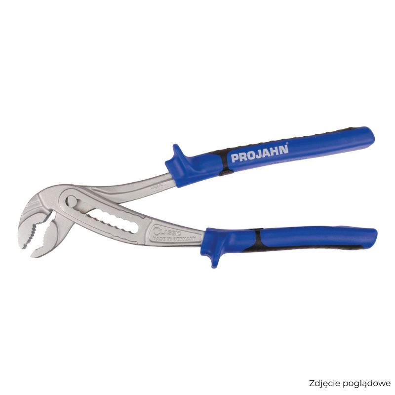 Zdjęcie poglądoweWytrzymałe szczypce nastawne do rur wodnych z przegubem wsuwkowym zapewniającym maksymalną wydajność. Przegub wsuwkowy z szerokimi powierzchniami prowadzącymi. Ergonomiczne położenie i kształt rękojeści dla optymalnego przenoszenia mocy. Optymalna geometria szczęk z samoblokującymi się ząbkami dla bezpiecznego chwytu. Szczęki z podwójnym uzębieniem. Siła chwytu o 40% wyższa niż w normie DIN ISO dzięki zakrzywionej regulacji zapadkowej.