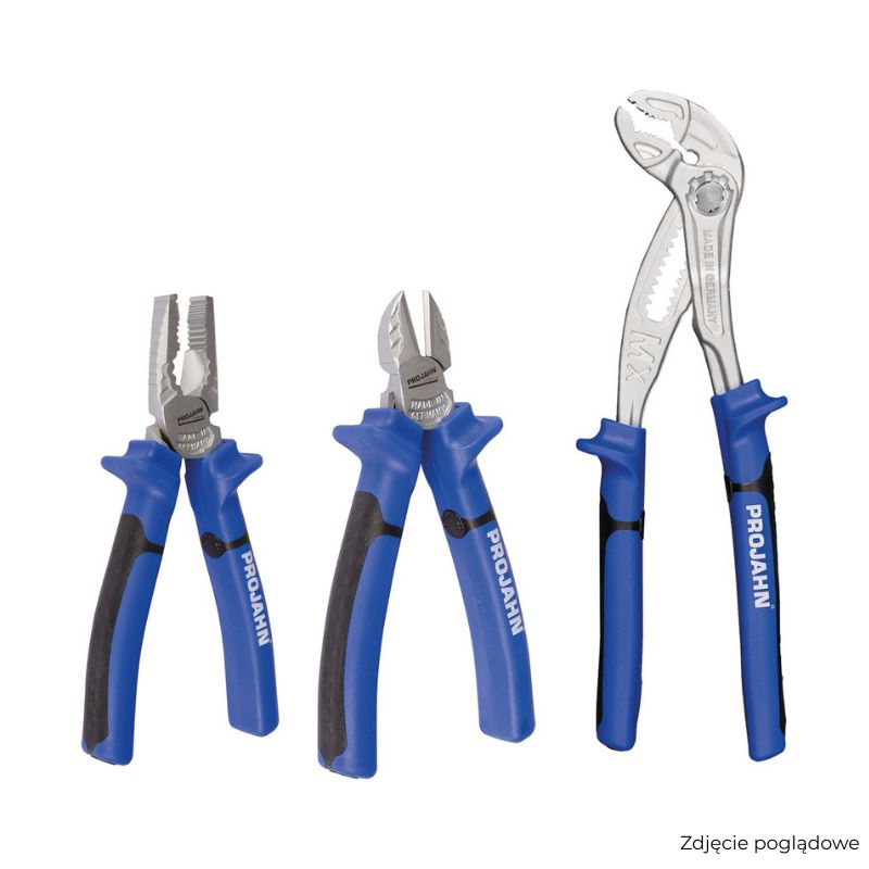 Zdjęcie poglądowe3-częściowy profesjonalny zestaw szczypiec. Do trzymania, chwytania, gięcia i cięcia. Rękojeści z ergonomicznie ukształtowanymi, wielokomponentowymi uchwytami zapewniają delikatną pracę. Narzędzia z optymalnym przełożeniem dźwigni dla łatwej i niemęczącej pracy. Dodatkowo, hartowane indukcyjnie ostrza rozszerzają zakres zastosowań i wydłużają żywotność.