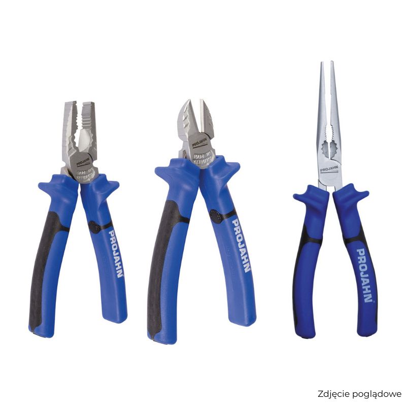 Zdjęcie poglądowe3-częściowy profesjonalny zestaw szczypiec. Do trzymania, chwytania, gięcia i cięcia. Rękojeści ergonomiczna, wielokomponentowa ze specjalnym ukształtowaniem zapewnia wygodną pracę. Narzędzia z optymalnym przełożeniem dźwigni dla łatwej i niemęczącej pracy. Dodatkowo, hartowane indukcyjnie ostrza rozszerzają zakres zastosowań i wydłużają żywotność.