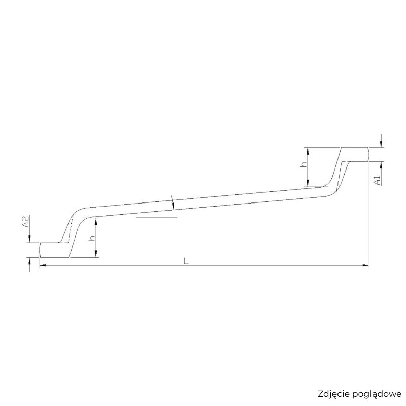 Obie strony klucza są wygięte i odchylone pod kątem 15°, co zapewnia wygodę pracy w trudno dostępnych miejscach. Wykonany z wysokiej jakości stali chromowo-wanadowej (CrV), pokryty chromowaną, matowo satynowaną powłoką, odporną na korozję i ścieranie.