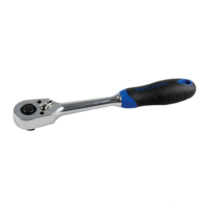 Solidny i trwały mechanizm zapadkowy. Z solidnymi, grubymi zębami (48 zębów) do największych obciążeń. Blokada za pomocą przycisku zapewnia bezpieczne połączenie grzechotki z nasadką. Łatwa obsługa jedną ręką dzięki przyciskowi szybkiego zwalniania i przełącznikowi kierunku obrotów. Miękka powłoka uchwytu minimalizuje ryzyko wyślizgnięcia się narzędzia, nawet przy dużej sile. Solidny, stabilny rdzeń rękojeści zwiększa stabilność i trwałość. Wysoka odporność na oleje i kwasy.