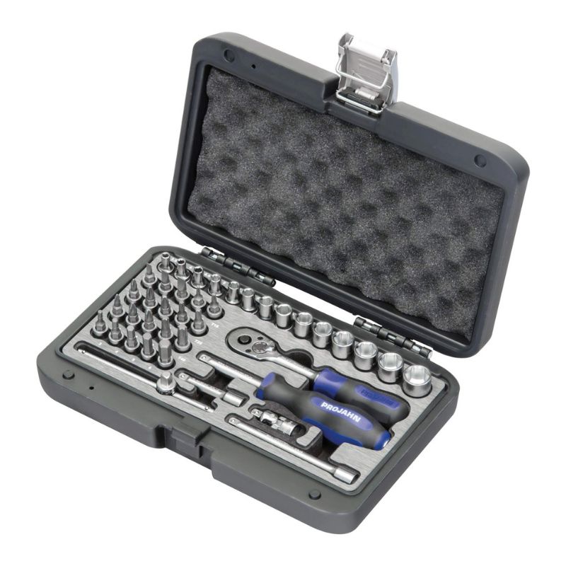 Zdjęcie poglądoweWytrzymała grzechotka z dwukierunkowym kierunkiem obrotu do wszystkich zastosowań. Najwyższa jakość dla wymagających użytkowników. Precyzja i trwałość znacznie przewyższają normy DIN/ISO. Ergonomicznie zoptymalizowana konstrukcja walizki i przejrzysty układ narzędzi. Zoptymalizowane pod kątem trwałości, aby sprostać najwyższym wymaganiom. Wysokiej jakości, wyrazisty wygląd premium. Narzędzia precyzyjnie osadzone we wkładkach piankowych z atrakcyjnym metalicznym wykończeniem powierzchni. Gwarancja jakości PROJAHN!