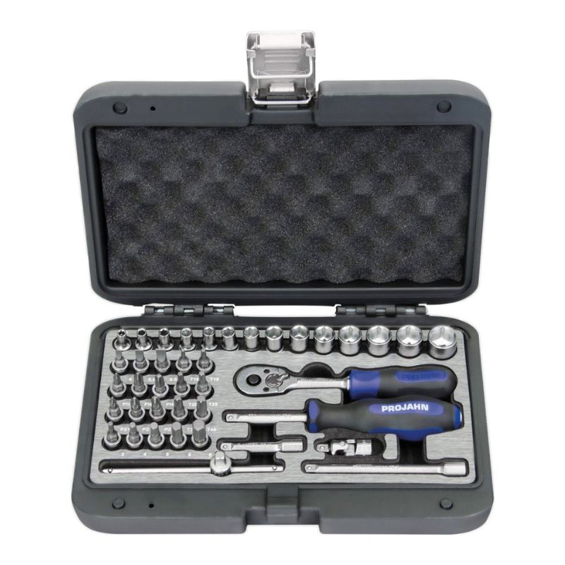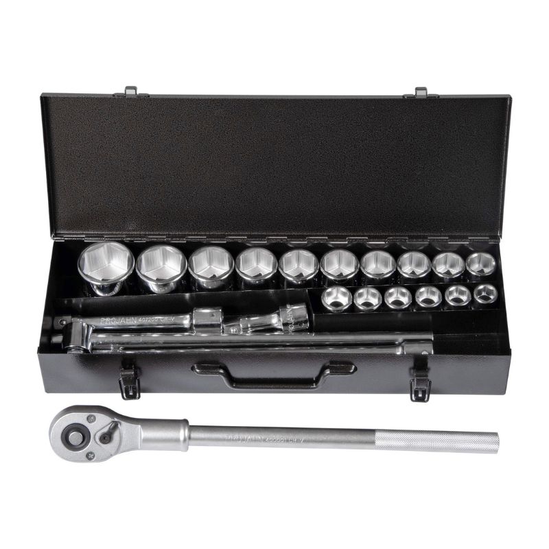 Rozbudowany, profesjonalny zestaw narzędzi nasadowych zawierający 91 precyzyjnie wykonanych elementów o napędach 1/4" (6,3 mm) i 1/2" (12,5 mm). Przeznaczony do szerokiego zakresu prac warsztatowych, montażowych i serwisowych. Narzędzia wykonane z wysokiej jakości stali chromowo-wanadowej oraz S2, gwarantującej odporność na obciążenia i długą żywotność. Grzechotki z mechanizmem o 36 i 40 zębach zapewniają płynną i wydajną pracę.