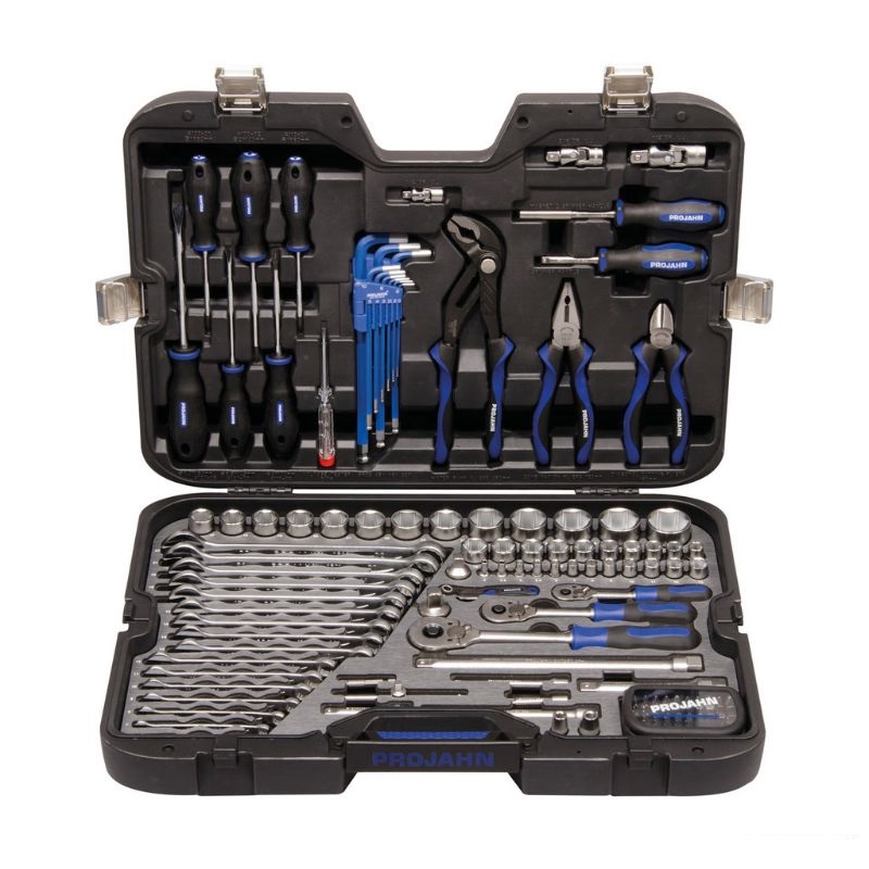 Kompletny, wszechstronny zestaw narzędzi nasadowych klasy Professional, zawierający aż 122 elementy o napędach 1/4" (6,3 mm), 3/8" (10 mm) i 1/2" (12,5 mm). Stworzony z myślą o profesjonalnych użytkownikach. Narzędzia wykonane z trwałej stali chromowo-wanadowej oraz odpornej stali S2 gwarantują niezawodność, odporność na zużycie i długowieczność. Grzechotki o różnych przełożeniach (36, 38 i 40 zębów) zapewniają precyzyjną i wygodną pracę w każdych warunkach.