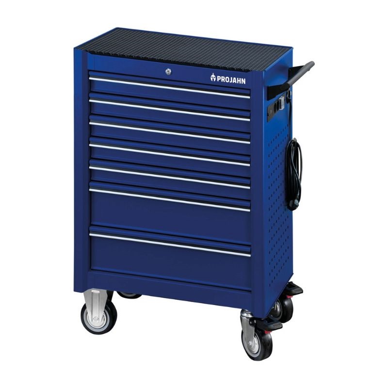 Profesjonalny wózek warsztatowy – profesjonalna jakość z ekskluzywnymi akcesoriami w nowoczesnym wzornictwie; Wózek warsztatowy UNIVERSE z listwą zasilającą 240 V. Z ekskluzywną, dwukierunkową jednostką rozdzielczą 240 V, w tym 2 porty ładowania USB i 5-metrowy kabel przyłączeniowy. Wyjątkowo wysoka stabilność i sztywność skrętna dzięki dwuściennej konstrukcji o łącznej nośności statycznej do 650 kg. Nowoczesny i dynamiczny design. Czterostopniowa koncepcja bezpieczeństwa. Wysokie bezpieczeństwo pracy dzięki zabezpieczeniu przed przewróceniem: Można wysunąć tylko jedną szufladę na raz. Indywidualna blokada szuflad zapobiega przypadkowemu otwarciu. Maksymalna stabilność dzięki 2 kółkom z hamulcami tocznymi i obrotowymi. Zabezpieczenie przed kradzieżą: Centralny zamek z zamkiem bębenkowym. Doskonała pojemność: 7 szuflad, w tym 2 o wysokości 154 mm i 5 o wysokości 75 mm. Wytrzymałe kółka odporne na olej i kwas. Możliwość indywidualnego wyposażenia we wkładki do wózków warsztatowych.