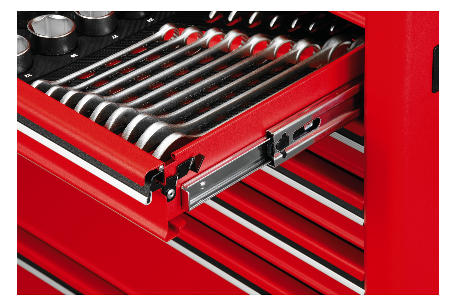 Pełny wysuw szuflad (100%) zapewnia doskonały dostęp do narzędzi