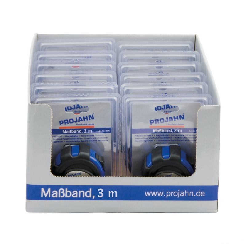 Odporna na wstrząsy, kompaktowa obudowa z tworzywa sztucznego z antypoślizgową, ergonomiczną powierzchnią. Magnetyczny hak do szybkich i łatwych pomiarów, nawet na duże odległości. Blokada taśmy i automatyczne zwijanie taśmy. Końcowy hak z podwójnymi nitami, regulowany do pomiarów wewnętrznych i zewnętrznych. Zdejmowany klips do paska. Zgodny z normami CE, klasa dokładności II.