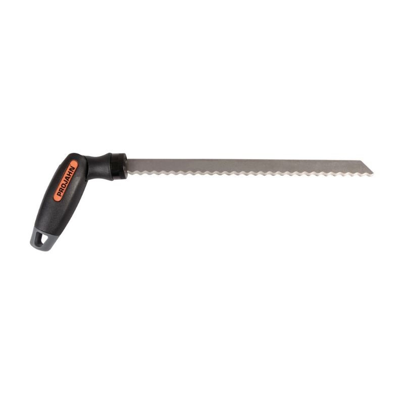 Dzięki obrotowemu pierścieniowi mocującemu zmiana narzędzia jest szybka i łatwa. Uchwyt można ustawić pod kątem dla lepszego przenoszenia siły, a w połączeniu z brzeszczotami z zębami falistymi idealnie nadaje się do cięcia materiałów izolacyjnych, miękkich materiałów, kartonu, styropianu oraz pianek. Sprawdza się także przy prostych pracach w drewnie i metalu.