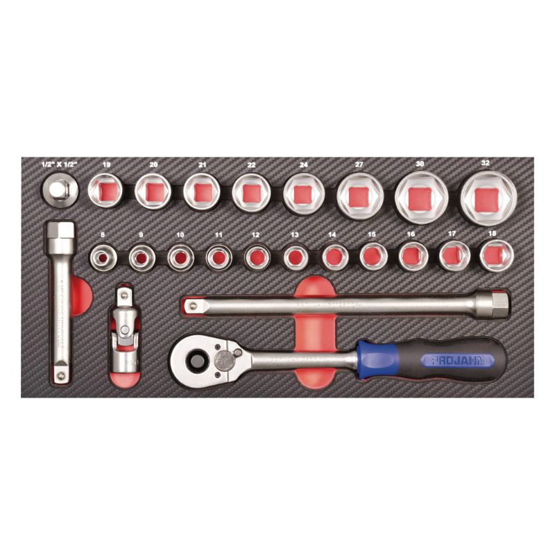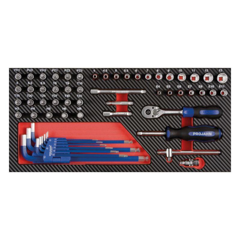 Profesjonalny wózek warsztatowy PROJAHN GALAXY w eleganckim kolorze czarno/srebrnoszarym to kompletne i funkcjonalne wyposażenie każdego warsztatu. Zawiera 198 wysokiej jakości narzędzi umieszczonych w precyzyjnie wyprofilowanych wkładach z pianki EVA, które zapewniają doskonałą organizację, bezpieczeństwo i trwałość. Wózek został zaprojektowany z myślą o profesjonalnych użytkownikach – od warsztatów samochodowych po przemysłowe stanowiska serwisowe. Ergonomiczne rozmieszczenie szuflad i solidna konstrukcja sprawiają, że praca staje się szybka, wygodna i uporządkowana.
