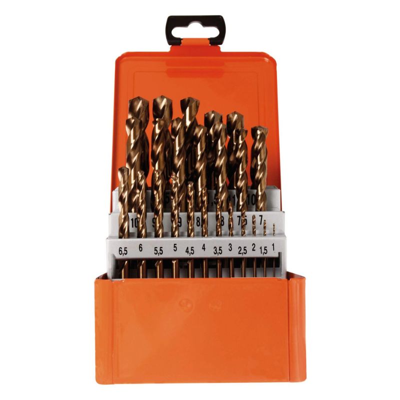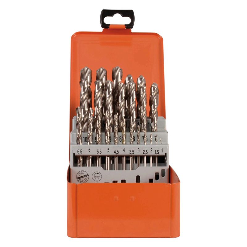 Wytrzymała, metalowa kaseta do przechowywania zestawu wierteł o średnicach od 1 do 10 mm, rosnących co 0,5 mm. Stabilna konstrukcja zapewnia skuteczną ochronę wierteł przed uszkodzeniami, a przejrzyste ułożenie pozwala na szybki dostęp do potrzebnego rozmiaru. Idealna zarówno do warsztatu profesjonalnego, jak i domowego użytku.