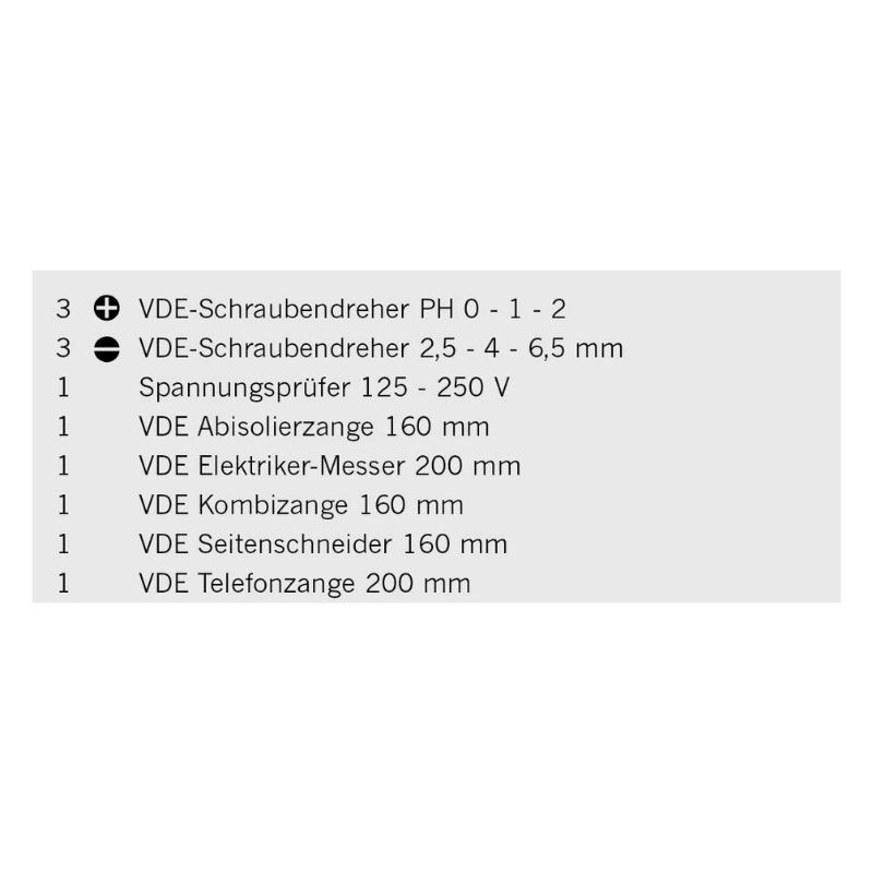 Wszystkie narzędzia w zestawie posiadają certyfikat VDE i zostały przetestowane zgodnie z normą DIN EN 60900, co zapewnia bezpieczną pracę przy napięciu do 1000 V.