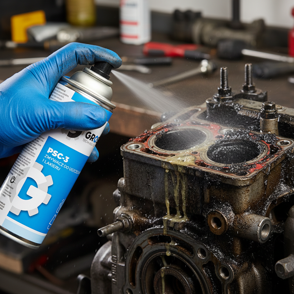 usuwa resztki uszczelnień pod głowicą silnika, przy konektorach i wydechu,